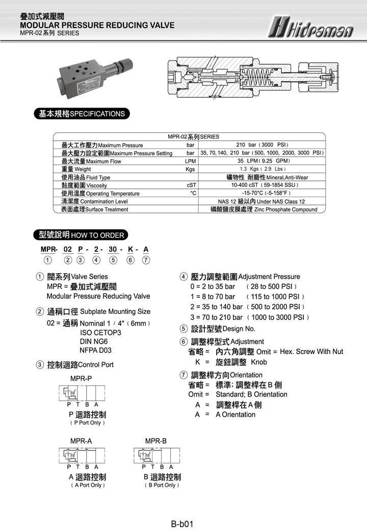 MPR -02 / MPR -03 Maximum Pressure: 210 BAR ( 3000 PSI )